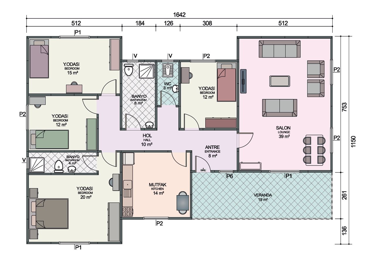 147 + 19 m 2 veranda tek katlı prefabrik konut