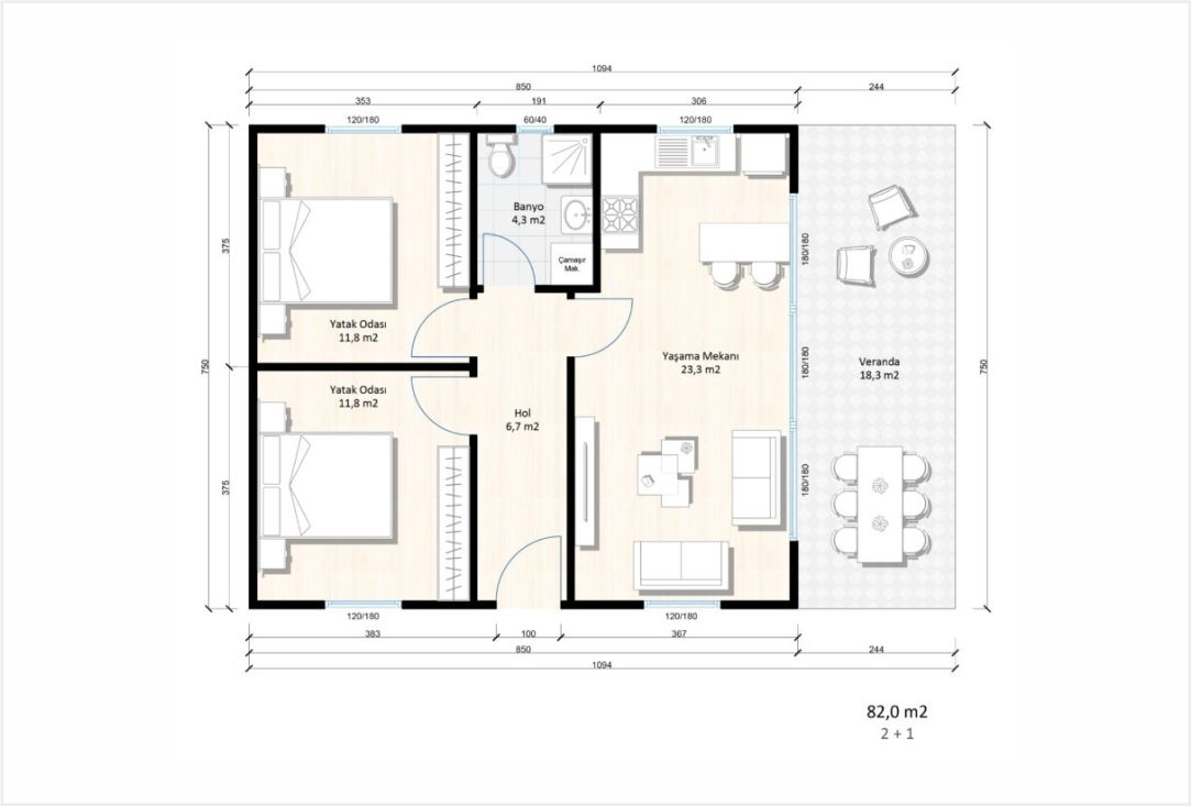 82 m² Modern ve Fonksiyonel Yaşam Alanı