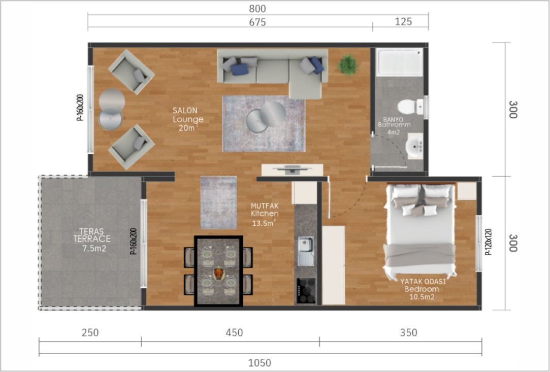 Yatak Odası: 10,5 m²